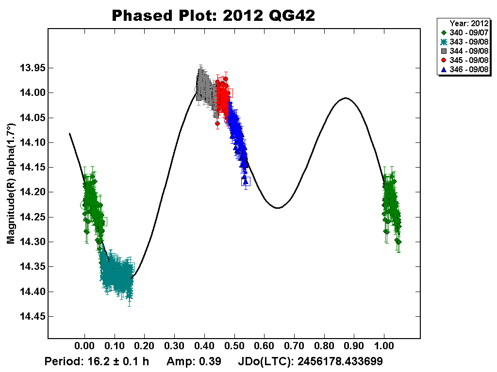 I dati raccolti sono stati inviati a Brian D. Warner Palmer Divide Observatory, il quale ha ottenuto utilizzando ulteriori dati un periodo di rotazione di circa 24h.