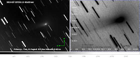 La cometa è stata ripresa da me il 15/10/2013, ed il 11/07/2014 utilizzando il sistema remoto di telescopi ITelescope.net dall'australia con il sistema T30, 0.50-m con risoluzione di 0.84"/arc con filtro Rc. exp 5x60 sec. D=1.994 r=2.034 mag 15.0